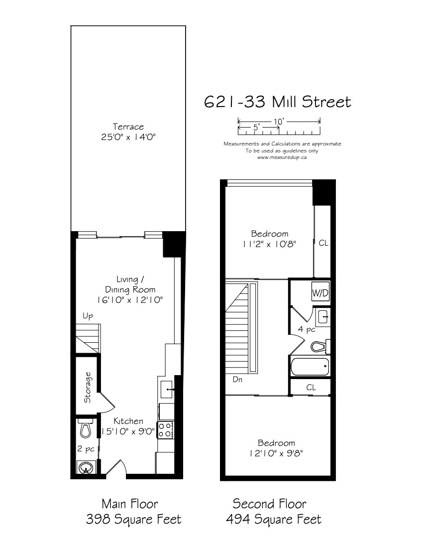 Head upstairs to capture unobstructed views of the historic Distillery District and the lake. Two cozy bedrooms rest on opposing sides of the loft, each with glass sliding doors and wall closets. Versatility is a major perk of this gorgeous unit – transform one of the bedrooms into a guest suite or a large office space to make it perfectly your own. A full bathroom with a bathtub and an under-mounted sink sits between the two bedrooms, adding luxury and calm after a busy day. A laundry closet is conveniently located and hidden away within the bathroom offering additional storage.