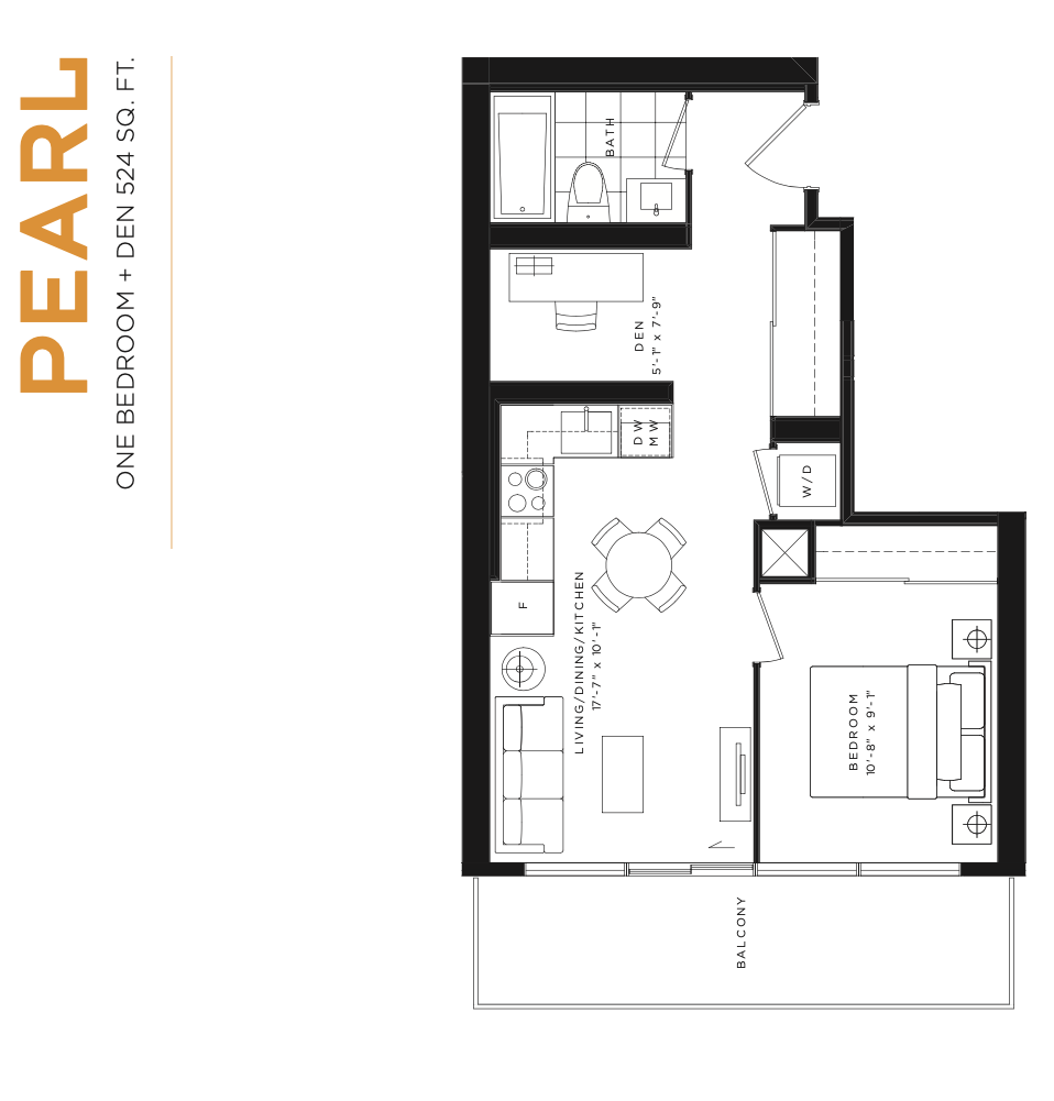 The versatile den makes for an ideal home office, creative space, or reading nook. In the bedroom, a custom Murphy bed adds flexibility, maximizing both comfort and space. The spa-inspired bathroom features a glass divider, adding a touch of modern elegance.